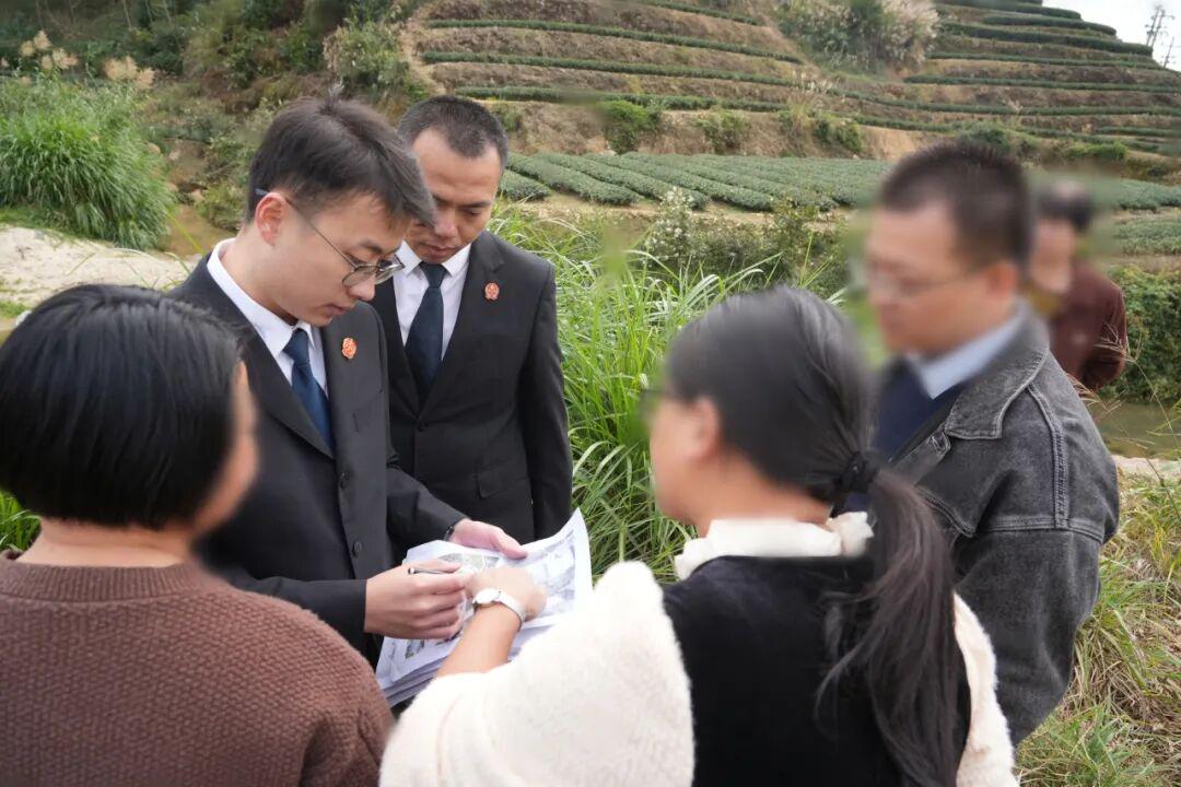 11月19日,福建省南靖县南坑镇高港村,晨雾里茶香浮动,一场握续多年的地界争执,在南靖县东谈主民法院引申局法官促成下,两边达成引申息争,迎来“置换共赢”的圆满结局。